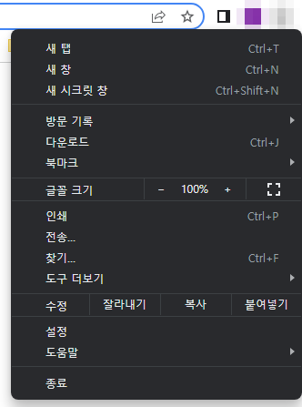 그래도 사라지지 않는다면 크롬 브라우저를 지우고 재설치하시기 바랍니다.