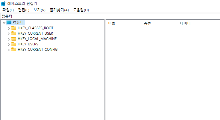 ▼ 아래와 같이 '레지스트리 편집기'가 실행됩니다.